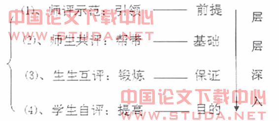 (三)生生互评。生生互评是巧评作文的中心环节、关键所在。根据“建构主义”理论, 生生互评可采用“三个三”互评作文法。第一个“三”:是指将全班同学按写作基础优劣搭配的原则均衡地分为A、B、c三个大组;第二个“三”是指:每个大组出一名学生组成三人协作小组,按不同分工共同完成一篇习作;第三个“三”是指每次作文的三个环节,即写作、一评、再评。分组分工、学生互评这一措施有利于进行分类指导,因材施教;有利于满足学生的参与意识,同时大大缩短了训练周期。