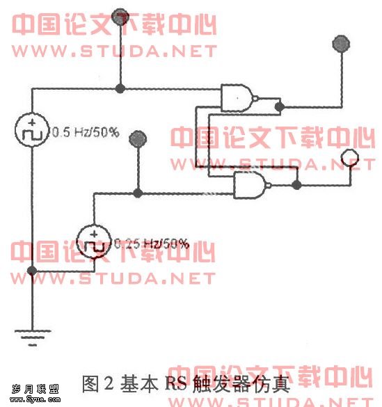 引起了同学们的兴趣后,我们又在EWB平台上进行仿真实验,验证了我们分析得到的真值表。通过预分析和仿真实验,学生们对触发器这类电路很感兴趣,接下来的内容就很容易被大家接受了。如图2所示。