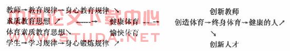 2.教师和学生共同在素质体育教育思想的指导下,以健康体育教育为基础,教师遵循科学的教育规律,学生遵循科学的学习规律,以创造体育教育和愉快体育教育为过程,以终身体育教育为目的,最终达到身体,心理的全面发展,成为一个健康和富有创造力的人。