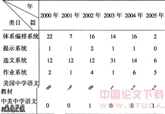 2000年以来,我们关于中美中学语文教材比较研究的论文可谓凤毛麟角,仅有2篇。究其原因,客观上,我们严重缺乏美国语文教材的第一手资料,但是在主观上也存在我们对此领域的忽视,甚至认为由于存在语言和文化的差异,国外母语教材的研究被放在了次要位置是理所当然的。