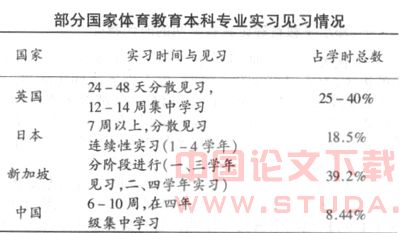由上表看出,我国体育教育专业存在实习时间短、安排过于集中、过于偏后等一系列弊端。这种培养模式加长了学生理论知识转化为实践知识的周期,不利于知识的强化和应用,学生脱离社会,很难获得学习的现实效果,更不利于及时发现、弥补自身的不足[1]。