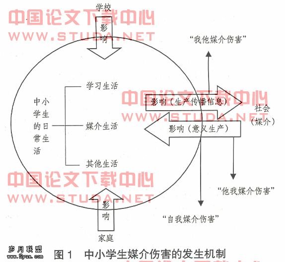再从中小学生的成长环境来看。在整个中小学生的日常生活中,影响他们成长的因素有三个方面,一是学校,二是家庭,三是社会。理想的状况是这三种影响源能够相互配合,一切为了中小学生的健康成长。这些都是常识,而这里需要重点关注的是作为社会影响一部分的媒介影响。不管媒介所传递的信息是健康的还是不健康的,它是客观的存在。受众者有可能是成年人,也有可能是未成年的中小学生。媒介的影响是既定的,但是它所产生的影响效果对成年人可能是一样的,对未成年的中小学生可能又是另一样的。而且对同样是未成年人的不同的中小学生来说,即使既定媒介影响带来了媒介伤害,但是这些媒介伤害从“身体伤害”“心灵伤害”,或“显性伤害”“隐性伤害”等不同视角来看,也会不一样。其中的原因在哪里? 人的行动是由心理(包括潜意识)所支配的,而不同的心理认识又来自于对客观世界的接触。总而言之,人接触到客观世界就会有某种心理认识,这些心理认识又会反过来支配人的行为。中小学生也是这样,当他们接触到媒介信息时,会产生某种认识,形成某种价值观念。这里产生认识、形成价值观念就是西方文化研究理论中的“意义生产”。中小学生接触到媒介信息时,会有意义生产,而他们的意义生产与许多因素有关系。当然最大的意义生产影响因素是媒介信息本身,但是即使接受的是同样的媒介信息,成年人与未成年中小学生所生产的意义也往往不一样。一方面,中小学生的理性还在中,人生阅历与经验不足,学校与家庭教育在当前对学生正确的人生认识和价值观念形成支持不够;另一方面,由于当前中小学生面临学业上的巨大压力,应试教育给中小学生普遍地带来了生活无快感的体验,中小学生对新媒介的热衷程度远远大于成年人。所以相对成年人,中小学生一方面对新媒介趋之若鹜,从中追求学业生活与其他生