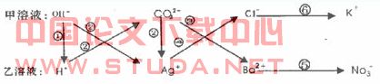 2分析思维过程如卜川甲中含有.H则H’在乙中这是思维的起点川H{和C以不能共存C’以和 Ag{也不能共存则Ag{在乙中洲C以和P az{不能共存则Paz’在乙中川A与日不能共存则Cl在甲中(川山于乙中有3种阳.离子故VU,应在乙中日‘Ag{只能与阴.离子中VU,共存可帮助判断同余卜的K{应在甲中从电荷守恒判断。