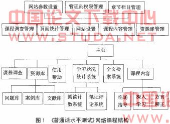 在建构主义学习理论的指导下,我们设计并开发了“普通话水平测试”网络课程,课程主要用于广大社会人群的普通话水平的测试培训,课程的结构设置如99页图1所示:
