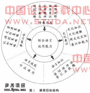 2.新课程标准的要求。高中英语课程总目标的其中一项就是培养学生的综合语言运用能力。综合语言运用能力的形成建立在语言技能、语言知识、情感态度、学习策略和文化意识等素养整合的基础上。总目标指出:文化意识是得体运用语言的保障。高中英语课程目标结构如下图所示: