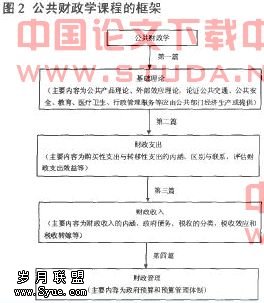在认识公共财政学的研究对象的基础上,就要把握与之相应的课程的框架。一般而言,课程的框架要体现该课程的结构和连贯性内容,使学生从整体上对该课程的思路与内容有个清晰的轮廓。这对课程学习具有基础作用。围绕研究对象,公共财政学课程的框架如图2所示。