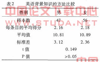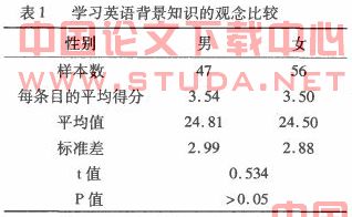 根据笔者的初步观察,男女生在对背景知识的态度及策略方面可能存在差异。本研究拟通过调查统计来验证这个假设。