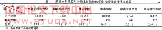 根据教育部本科教学水平评估指标规定,本科院校在合格时,生师比应达到 16:1,但这五所新建本科院校的生师比都是 19:1以上(表1),与合格本科院校的要求还有一段距离。
