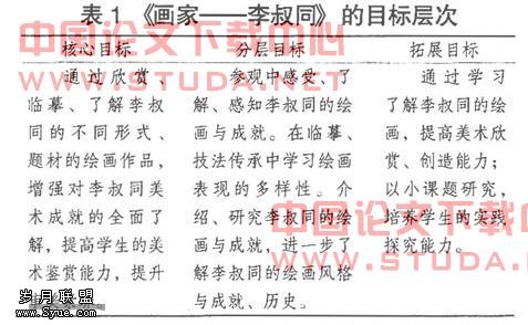 我们的校本课程开发、构建,以学生成长和发展的需求为导向,目的是有利于学生个性发展,能够为学生提供发展空间;同时通过整合学校的多种资源优势,挖掘教师潜力,培养教师主动性、积极性;积极寻求专家指导、引领课程构建,在实践基础上不断提升资源,完善校本课程。李叔同人文资源校本课程的构建策略是: