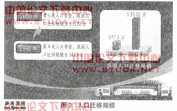 未来30年是我国人口规模和人口迁移两大高峰迭加时期。总人口到2033年达峰值到15亿。随着城镇化加速,未来30年也是我国人口迁移最为活跃的时期。1990年“四普”的时候,人口迁移规模是3000多万,到2000年“五普”的时候,人口迁移规模为13122万。(如图2所示)现在又过去七年了,人口迁移大幅度地增长。教育部门现在做的好多事情实际上都是跟人口迁移有关系。人口迁移不仅带来九年义务教育问题。迁移农民工进城,就是新的劳动力增加,与高等教育、职业教育的发展都有关系。