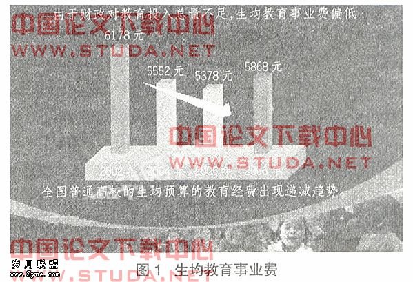 2002年,全国普通高校的生均预算的教育经费是6178元,2004年是5552元,2005年是5378元,呈下降趋势;2006年5868元,有所回升,但是还没有达到2002年的水平。这几年总量是增加很大,但由于规模扩张太快,所以生均事业费偏低。