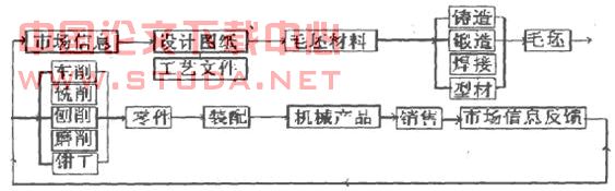 传统的实习方式是根据教学基本要求,分散在各个工种的实习中贯彻的,其结果使实习缺乏整体感、系统性,实习的全过程不明确,形不成总体概念,给学生一种“只见树木,不见森林”之感,而生产是一个系统工程,是由各种环节组成的。因此只有在实习中注重学生树立系统总体的概念,才能达到培养其综合能力的目的。比如,金属工艺学实习,在认真贯彻教学基本要求的基础上,其机械制造过程可以归纳为如下闭环循环:
