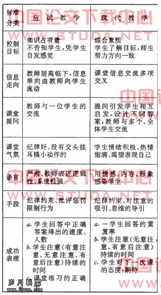 1.两种不同课堂控制标准比较.