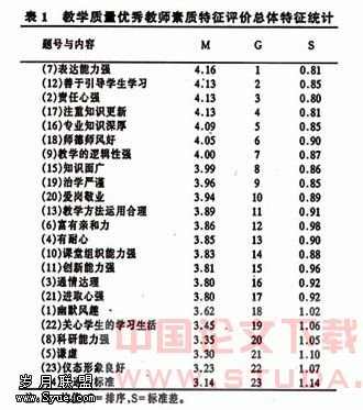 二、教学质量优秀教师素质特征评价总体特征分析