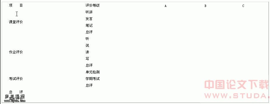 (注:A表现良好 B表现一般 C还需努力)