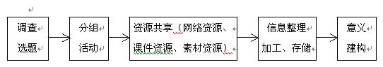 学生作为积极主动的学习者,在信息技术的帮助下,对教学内容适当扩展和延伸,通过校园网、因特网等平台获取信息、交流信息,将学科间知识、课内与课外、学校与社会生活有机结合起来。这种整合方式很大限度地促进了学生身心和谐统一的。在这种方式中,教师仅对学生的选题、收集和分析资料和方法进行一般性指导。而问题的形成、方案的实施到最后任务的完成都由学生自主完成。其教学过程可用下图表示: