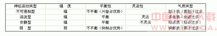 俄国生理学家巴甫洛夫通过实验研究发现,神经系统的兴奋和抑制过程具有强度、平衡性、灵活性三种基本特性。根据这三种特性的差异组合,将人的高级神经活动分为四种类型,而这四种类型与古希腊医生希波克拉特的分类恰好相对应,高级神经活动类型是人的气质的生理基础。这两种类型相吻合,人的气质可分为四种典型的类型(见下表)。