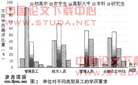进行了问卷调查。调查结果显示,高职毕业生在就业竞争中仍然具有一定的优势。在调查的46个用人单位中,对所招收的员工学历要求如图2: