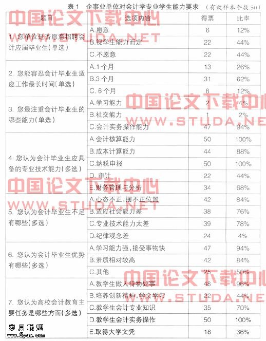 (一)企事业单位对会计学专业学生能力要求