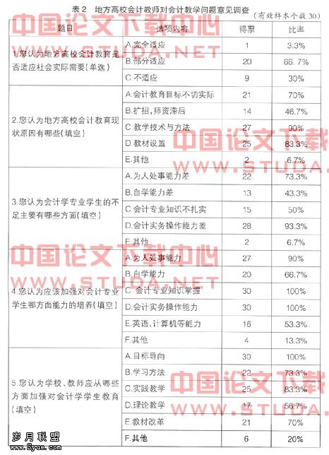 (二)地方高校会计教师对会计教学问题意见调查