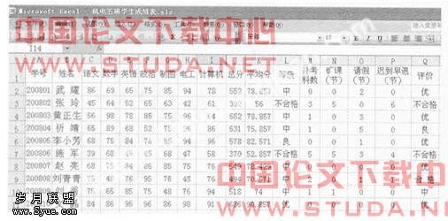 1.启动Excel 2003,建立学生成绩表(如下图1),并另存在D盘,命名为“机电五班学生成绩表”。