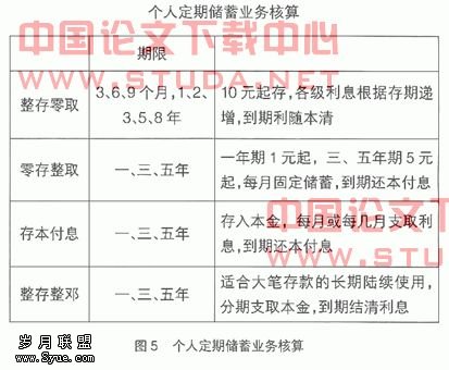 如《存款业务的核算》一章,教材对个人定期储蓄存款的介绍大多在10页左右,详细地分析了各种储蓄方式的特点。在此基础上,可以制作课件绘制表格(图5),把各种储蓄方式从存款期限、起存金额和计息方法等方面作参照和对比,让学生们对此有系统的理解。