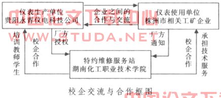贵阳永青仪电科技公司是以生产智能型仪表、仪表屏和仪表柜为主的一个公司,其产品销往全国各地,特别是湖南株洲地区,因此,售后服务成为该公司一个不可忽视的问题。为了使公司的售后服务及时到位,同时也为学院的师资培训搭建平台,2005年,我院自动化系和贵阳永青仪电科技公司进行充分协商,以“生产过程自动化技术”专业的教师为依托,以株洲的工矿企业为舞台,在原仪表教研室的基础上,成立了贵阳永青仪电科技公司特约售后维修服务站并正式挂牌,实现了校企之间的相互交流与技术合作,为“生产过程自动化技术”专业的产学研结合注入了新的活力,从而使自动化系在产学研结合方面迈出了可喜的一步。贵阳永青仪电科技公司在我系设立特约售后维修服务站,主要负责对株洲地区使用永青仪电科技公司生产的仪表设备进行维修。特约售后维修服务站的成立,既解决了贵阳永青仪电科技公司远距离维修不方便的问题,又对我院产学研结合工作的顺利开展起到了积极的促进作用。下图为校企之间交流与合作框图,它所涵盖的功能可用四个有利于加以概括。