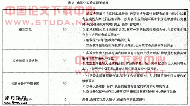 试验室设置的状况如何呢?能否发挥其模拟企业实习的功能?笔者认为应首先制定实验室建设标准。