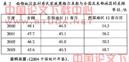 “三农”问题历来是党和国家领导人高度重视的问题,农民的生计问题不解决,农民的生活质量不提高,就会对国家的稳定造成影响。西部地区农村居民家庭的恩格尔系数与全国及东部地区的差距如表2所示。从表2的数据分析,西部地区农村家庭恩格尔系数与全国及东部地区的差距呈逐年下降的趋势,在一定程度上反映了西部地区农民家庭生活水平的提高,但是与全国及东部地区相比仍存在较大差距。农民生活水平的真正提高离不开农业经济的发展,农业经济的快速发展势必需要掌握一定科学技术和技能的高素质的农业劳动者。大力发展农村职业教育,培养新型农业技能型人才,建立广大的农业科技示范园区,是提高农业生产效率,走科技兴农发展道路的必由之路。