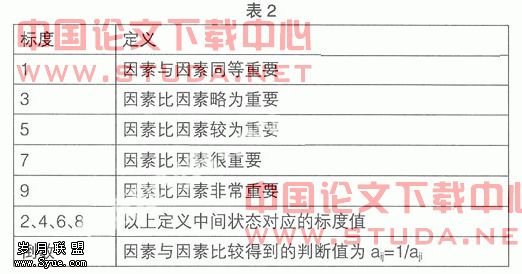 表3中权重系数的确定: