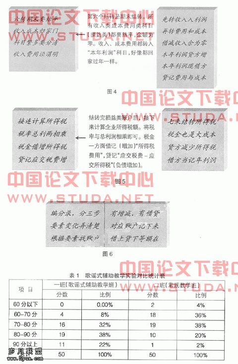 笔者从长时间的《基础会计》教学过程中摸索出了一种全新的配套教学方式即歌谣式教学方式。这种教学方式不是全盘否定“理论结合实践”教学体系,而是针对该体系的相应弊端提出的一种“配套工程”,是对该教学体系的一种修正和完善。具体的做法是,在会计学原理授课过程中,将相关原理、知识点编制成朗朗上口的歌谣,帮助学生进行知识点的串联与记忆,从而达到较好的教学效果。不仅提高了学生知识点记忆的概率,也提高了指导其实践的能力。