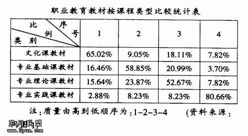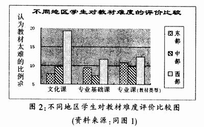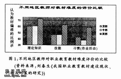 不同年级的学生对教材难度评价差异较大.而且按一、二、三、四年级呈现递变,年级越低认为教材偏难的比例越高,年级越高认为教材偏易的比例越高。 教师对不同类型课程教材质量的评价差异较显著,教材质量由。高到低按文化课、专业基础课、专业理论课和专业实践课的顺序排列。 由于我国幅员辽阔,经济社会发展极不平衡,众多的区域教育研究成果表明,教育发展水平西部地区明显低于中东部地区,职业教育与区域整体教育的发展水平和教育质量密切相关.大部分职业教育教材没有体现区域性差别,甚至出现了一种教材统一大半个的现象.客观上造成了西部地区的教师和学生对教材评价偏难的比例偏高。近年来,由于实施了高校扩招政策.普高热随之出现,职业教育生源质量呈现逐年下降趋势,年级越低,基础越差,而职业教育教材没有相应的变化,使得学生年级越低认为教材越难。在各种教育类型中,职业教育与经济、科技发展联系最紧密,科学技术发展迅速,知识更新速度加快,我国经济正处于高速发展和转型期,职业教育专业理论课和专业实践课教材必须及时跟上经济与科技的发展。目前我国的职业教育教材没有很好的适应这种变化,其内容和形式较为陈旧,这必然导致师生对专业课教材质量的评价结果较差。 二、职业教育教材建设必须体现区域性与适应性 深入分析职业教育教材评价差异产生的原因,我们会发现,造成差异的根本原因在于目前我国职业教育教材建设不能很好地适应科学技术的进步与经济社会的快速发展,不能适应职业学校学生的客观实际;职业教育教材没有体现区域特色,脱离了部分地区的教育发展水平。 职业具有区域性和适应性特点,决定了职业教育教材也必须体现区域性和适应性特点。职业教育教材的区域性特点要求职业教育教材建设要主动服务于区域与社会,应根据不同地区的经济、科技和教育发展水平编写教材。职业教育教材的区域性,必然要求职业教育教材实现多样化。 职业教育教材的适应性应从两方面认识.即适合与适用。适合是指职业教育教材必须适合教育对象的年龄特征、个性特征和发展水平,学生实际是教材建设最重要的背景和最基本的现实。美国著名认知派教育心家奥苏伯尔在他的《教育心理学:一种认知观》中,把教材作为学习中的认知因素而对教材的展开顺序进行了详尽的探讨。他认为教材的组织不能只考虑学科知识的逻辑体系,也要考虑学生心理特点和心理发展特点。这就要求不仅以学科知识作为组织教材的理论基础,而且要以心理学作为组织教材的理论基础。适用是职业教育教材必须适应技术的进步和经济社会的发展,职业教育教材尤其是专业课教材必须紧跟科技进步的步伐,职业教育教材应实现与科技市场接轨,把握科技新动态.将最新科技成果及时纳入教学内容,同时要注意我国正处于化中期的开始阶段,生产力总体水平还比较低的现实。职业教育教材一方面应有行业特色,以适应行业、提高工艺水平和科研成果转化等对一线人才的需求;另一方面要根据职业学校毕业生到一线现场从事技术工作的实际,使学生所掌握的知识和技术能够切合实际.即取材恰当,适用性较强。 三、职业教育教材如何体现区域性与适应性 1.树立科学的职业教育教材观 科学的职业教育教材观应该是开放式的教材观,它坚持面向学生、面向职业岗位群、面向社会,教材设计和编写要最大限度地满足学生的需要和可能,符合职业院校学生的身心发展。学生也不再是教材被动的受体,而是对教材能动地实践创造的主体,教材不再是只追求教育经验的完美的预设,而要为学生留有发展的余地,使学生真正成为学习的主体,从而为学生就业和终生学习打好基础。 科学的职业教育教材观要求教材克服学科本位论,放弃片面强调学科体系的完整性、全面性、系统性。要从学生的就业和岗位需求以及可持续发展的角度审视职业教育教材,真正实现从学科本位向学生职业能力本位转变。 要树立正确客观的教材内容观,教材内容必须是能使学生形成基本职业素质的知识和技能,同时还应选择对学生继续学习能力有帮助的内容,要与社会、科技、职业发展紧密联系.改变课程内容繁、难、多、旧的痼疾,突出体现服务于发展学生综合职业素质和职业能力的功能。 2.职业教育教材要准确定位 首先要正确定位职业教育的培养目标和人才培养模式。职业教育是有别于学科型、研究型、工程型的普通教育,培养中、高等技术应用性人才是职业教育人才培养目标的基本内涵,职业教育是直接为地方或行业经济发展服务的,培养目标应突出职业性、行业性的特点。 第二,要正确定位职业教育教材内容,教材应服务一定的职业岗位或岗位群。尽可能以职业标准为主要依据,编写时注意与职业基础内容的衔接,突出以职业性内容为主,以学术性内容为辅的特点,理论知识要根据“必需、够用”的原则编写;二是在教材的编写中加强实践性教学环节,融人足够的实训内容,保证对学生实践能力的培养,体现技术应用性人才的培养要求。充分体现实用性、针对性、简约性、及时性、新颖性和直观性。 第三,要准确定位职业学校学生的学习基础与学习品质。中等职业学校学生与高中学生、高职学校学生与普通高校的学生虽然都处于相同的教育阶段,身心发展有共性
