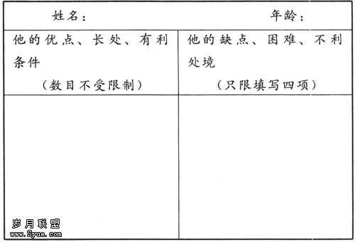 “另类镜子”(见表2)的考验让教师对自己的发现进入了更深的层次。在“另类镜子”的习作纸上,培训者请教师写出一个需要帮助的孩子的年龄和姓名,然后在纸下侧的左边写出这个孩子的优势、长处和有利条件,数目不受限制。而在纸的右边写出这个孩子的缺点、困难和不利处境,只允许写出四项。写完后培训教师发问:你有什么发现?教师们纷纷说对孩子缺点项目的描写太少了。接着培训者会进一步发问:在日常的教育过程中,青少年接收到更多的是左边的(优点)信息,还是右边的(缺点)信息?教师们回答:当然是右边的信息。接着培训者继续问:在青少年成长的过程中,如果他们经常接收的是左边的信息会对他们产生什么样的影响?如果他们经常接收的是右边的信息又会对青少年产生什么样的影响?此时此刻教师们都积极地回应说,强调正面的信息会对青少年的健康成长产生良性的影响。