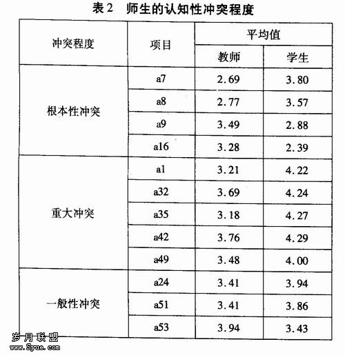 从表2中可以看出,师生之间存在着根本性选择态度差异的项目包括a7、a8、a9和a16等4项,全部是价值性冲突,而冲突程度相对较低的其他冲突则大都为程序性冲突。 四、分析与讨论 (一)师生认知性冲突的特点 本次研究的结果显示,高校学生评教中师生间的认知性冲突具有以下几个特点: 1.相容性程度较高 本次问卷调查的统计分析结果表明,师生之间的许多意见分歧都是同中有异而又异中有同的,多数项目仅存在着选择偏好程度的差异。除了主要的价值性冲突项目以外,在其他项目上师生之间的基本态度取向都是一致的,不存在完全对立的立场与态度。尤其在程序性冲突上,这种相容性表现得更加明显。例如,在学生评教指标体系问题上,师生们都认为教务处以前制定的评教指标太粗,但究竟设置多少个指标较为恰当?似乎教师们认为指标体系越细越好,而学生们则认为指标体系既不要太简单,也不应当太繁琐。这种可融合性较大的分歧使得双方有可能在求同存异的基础上达成共识,为冲突的管理提供了较大的协商与调解空间。 2.以建设性冲突为主 高校学生评教中的师生认知性冲突主要为理念、态度、主张等价值与方法论选择方面的内在冲突而非表面性的冲突,因此主要表现为思想隔阂及情感对立,一般较少外部行为的直接对抗。这些内在冲突尽管范围较广、频率较高,但强度较小,所以分歧一般不会沿着惟一的裂缝发生,从而降低了整个冲突的破坏性。 认知性冲突的产生和解决还可能导致创造性地解决学生评教中的一些难题,因为解决冲突的需要能够促使人们改变其思考问题和处理问题的方式,引导大家共同寻找更为合理的学生评教方法。不同思想的交流,不同意见的交锋,能使人们对问题的认识更加深入,极易激发创造性思维的“火花”,从而产生一些建设性的意见与方案。 (二)师生认知性冲突的成因 1.信息差异 由于信息来源的渠道不同、信息传递过程中的偏差与遗漏以及信息的非对称性等各种原因,使得师生双方获得的信息可能存在差异。如果这些差异不能在有效的沟通中得到弥补,就极易产生误会、隔阂乃至成见,并最终表现为冲突。 例如,就学生评教结果而言,评教组织管理者、评教主体和评教客体(教师)之间存在着明显的信 息不对称。鉴于评教结果具有一定的非开放性,一般学校在反馈结果信息时都采取比较谨慎的态度,将信息受众的知情权划分为不同等级,有区别地进行反馈。根据化、信息化时代的信息传播特点,学生普遍要求扩大自己的信息知情权。这种反馈信息的不对称往往会进一步加剧师生之间的意见分歧。 2.认识差异 即使收集的信息完全相同,双方由于各种原因也会在认识上存在差异,从而形成立场、观点和意见上的分歧。例如,很多高校教师都对学生评教感到“不舒服”。有的教师认为学生的认知水平不足以评价学术性很强的大学教学过程;有的教师认为学生的评价不太符合客观实际;有的教师认为学生评教侵犯了自己的教学自由,等等。与此相反,学生群体则认为评教是自己的权利,自己对教师的评价也是公允和客观的。 3.利益差异 高校学生评教中师生间的认知性冲突往往可以找到深层次的利益原因。在市场大背景下,师生群体有着各自不同的现实利益,基于这些利益基础上的认知不可能完全一致。上学收费制度和毕业生自主择业制度的实施,使得大学生对自己的求学成本与收益的关注日益加深,维护自己权益的意识不断加强。因此,他们对教师的要求越来越高,对于学生评教的必要性及考评性作用十分重视。而教师从自身专业及切身利益出发,强烈反对把学生评教结果与教师工作评估(如教师职称评定、年终评优等)挂钩。因此师生之间在学生评教要否进行以及评教结果如何运用等问题上(a7、a8、a9和a16等项目)的态度十分敏感,存在着根本性的分歧。 五、结论本次实证研究表明,高校学生评教中师生间的认知性冲突是客观存在的。这些冲突既包括严重对立的价值性冲突,也包括一般性的程序性冲突。总体来看,师生间的认知性冲突仍然具有较高的互容性与管理上的建设性意义。具体分析冲突主体间的差异性因素,有助于对冲突实施恰当有效的管理。 : [1]陈玉琨.评价学[M].北京:人民教育出版社,1999. [2]薛天祥.高等教育管[M].桂林:广西师范大学出版社,2001. [3]郭朝阳,何燕珍.管理学概论[M].北京:科学出版社, 2000. [4]王宪平.学术自由与学生评教[J].教育评论,2002,(4). [5]李英荣,李随成.高校师生冲突的特点、原因及对策[J].西北大学学报(社会科学版),2003,(2). [6]朱朝旭.内部建设性冲突管理及其方法应用——兼论变革时期的冲突管理[D].对外经济贸易大学企业管理硕士学位,2002,4.