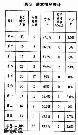 (2)从表3可以看出,各系部教学满意率达100%的教师占测评教师的43.4%以上.不满意率高于30%的教师占测评教师2.6%,说明我院连抓教学质量不放松取得了较大成效。