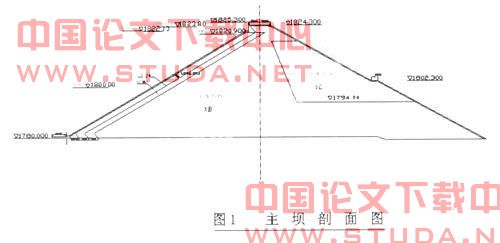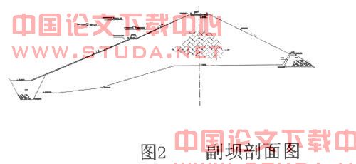 主坝为坝顶溢流砼面板堆石坝,是云南省第一座坝顶溢流面板堆石坝,最大坝高45.30m,坝顶宽7.00 m(如图1 主坝剖面图)。副坝坝型为粘土均质坝,最大坝高15.30m,坝顶宽5m(如图2副坝剖面图)。