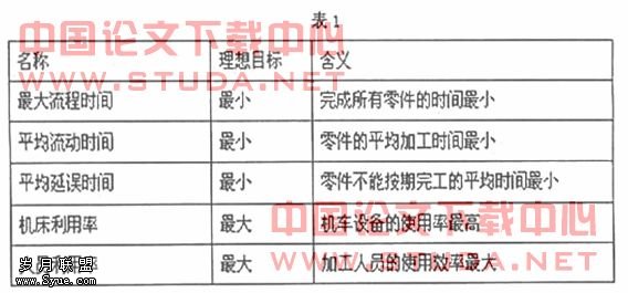 国内外的相关人员通过对各种调度方法与策略的研究,已经提出了很多控制系统模型,每种模型都是按照调度中常用的一个或多个性能指标来设计的,车间调度的常用性能指标有: