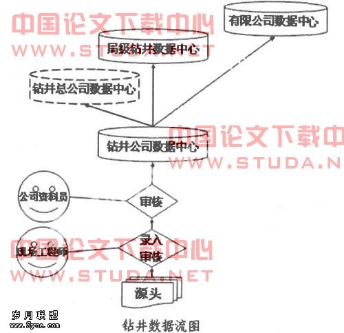 所有的钻井数据在源头一次录入,远程传输至钻井公司,经过公司技术人员审核后进入钻井数据中心。钻井数据的审核流程和交换流程下图所示: