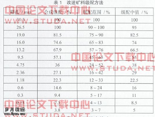 为了防止急弯、陡坡路段的推移,我们采用了改进矿料级配的方法,即采用AC-25沥青砼配比(见表1),这样既提高了沥青砼路面的耐磨性,又增加了沥青砼路面与水稳基层的粘结力,同时还节约了沥青用量。