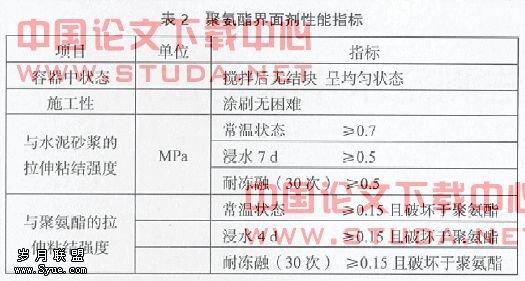 (2)施工前,应核对所有进场的界面剂原液的名称、品种、出厂日期及各项技术指标(见表2),必须进行二次复试合格后方可使用;界面剂中所用的石英砂不能含有有机质,以中砂为标准,水要用饮用水。