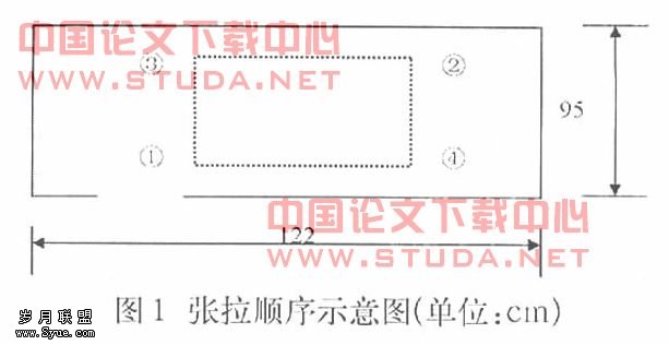 其中1号、4号预应力筋采用一端张拉;2号、3号预应力筋采用两端张拉。实际张拉时,采用先把一端锚固,一端张拉后,另一端初中张拉力的办法进行。