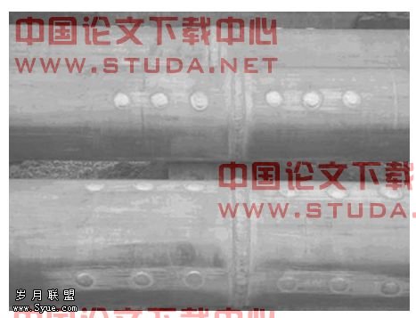 4.合金管母焊接口的处理和组装。这是管母焊接质量控制的关键。合金管母对口焊接应有30°~40°坡口,1.5~2mm钝边,机械加工、表面无毛刺和飞边,接口两边必须尽量靠拢,避免将焊缝与补强管焊接在一起,以便提高焊接强度(如图1所示)。焊缝上部应有2~4mm的加强高度,焊缝应呈圆弧形,所有焊缝、焊点应平整、光滑,不应有毛刺、凹凸不平之处(见图5)