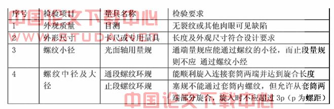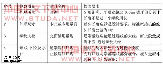 丝头检查的项目、方法及要求如下表2。