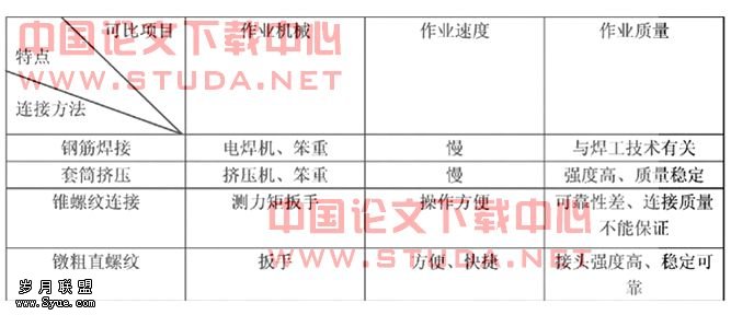 镦粗直螺纹钢筋连接技术是在钢筋焊接、套筒挤压和锥螺纹连接技术的基础上发展起来,因此较之有自身的优点,见表1。
