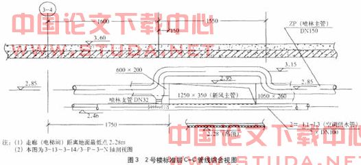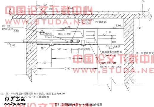 风管、水管、电缆桥架是我院几个专业分别设计的,由于设计周期的紧迫,院内各专业之间只能通过协调进行大体的空间分配,来不及对每一处集中多种管线的空间进行详细地划分。管线综合图涉及了建筑结构设备电气各个专业,不是某一个专业可以独立完成的,它不属于设计院施工图的设计范围。但是作为建设单位,往往关心下列问题:如果层高不变,吊顶下的净空能否再提高一些?在满足某一净空要求的条件下,可否把层高降低一些以节省投资?作为施工总包单位,常常关心如何协调各分包单位的施工程序,谁先干,谁后干,各种管线的空间位置怎样予以合理分配?