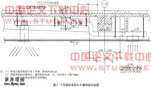 管线综合就是将建筑物中的通风空调风管、水管,给排水及消防水管,强、弱电桥架等所有占据顶部空间的大型管线进行合理布局,使之在保证功能满足使用的前提下,减小空间尺寸,加大吊顶下空间,降低层高,从而取得更好的效益。