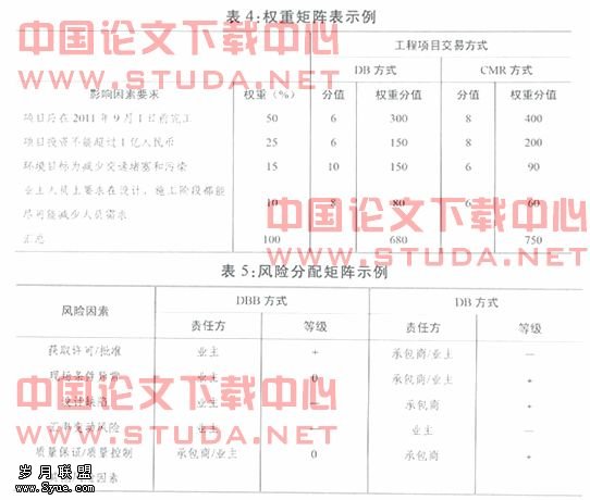 通过对风险分配矩阵的审视,业主可确定是否有某一个特定的工程项目交易方式在风险分担上最优。如果定性分析不能得出确定的答案,则进入定量分析选择。