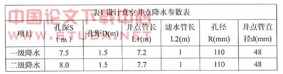 本工程基坑一设计基底-9.600m,基坑二设计基底-11.250m,采用二级真空井点降水分。一级降水在基坑开挖完成前进行,二级降止水在基坑开挖支护至6m深度后进行。