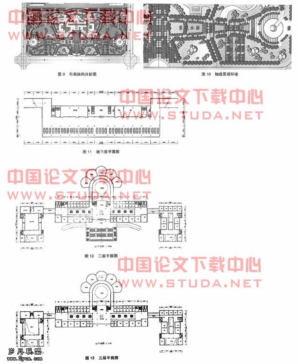 两条轴线——东西、南北两条景观轴线形成了对整个地块的领域控制。南北景观轴既是办公人员进入行政中心的“桥梁”,也再现了行政办公建筑强烈的“礼制”秩序。