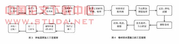 3.2.3.4铺第一层防水卷材:采用满粘法施工,铺贴顺序为从雨水口部位开始向标高高的方向层层铺贴;长边搭接100mm,短边搭接150mm。